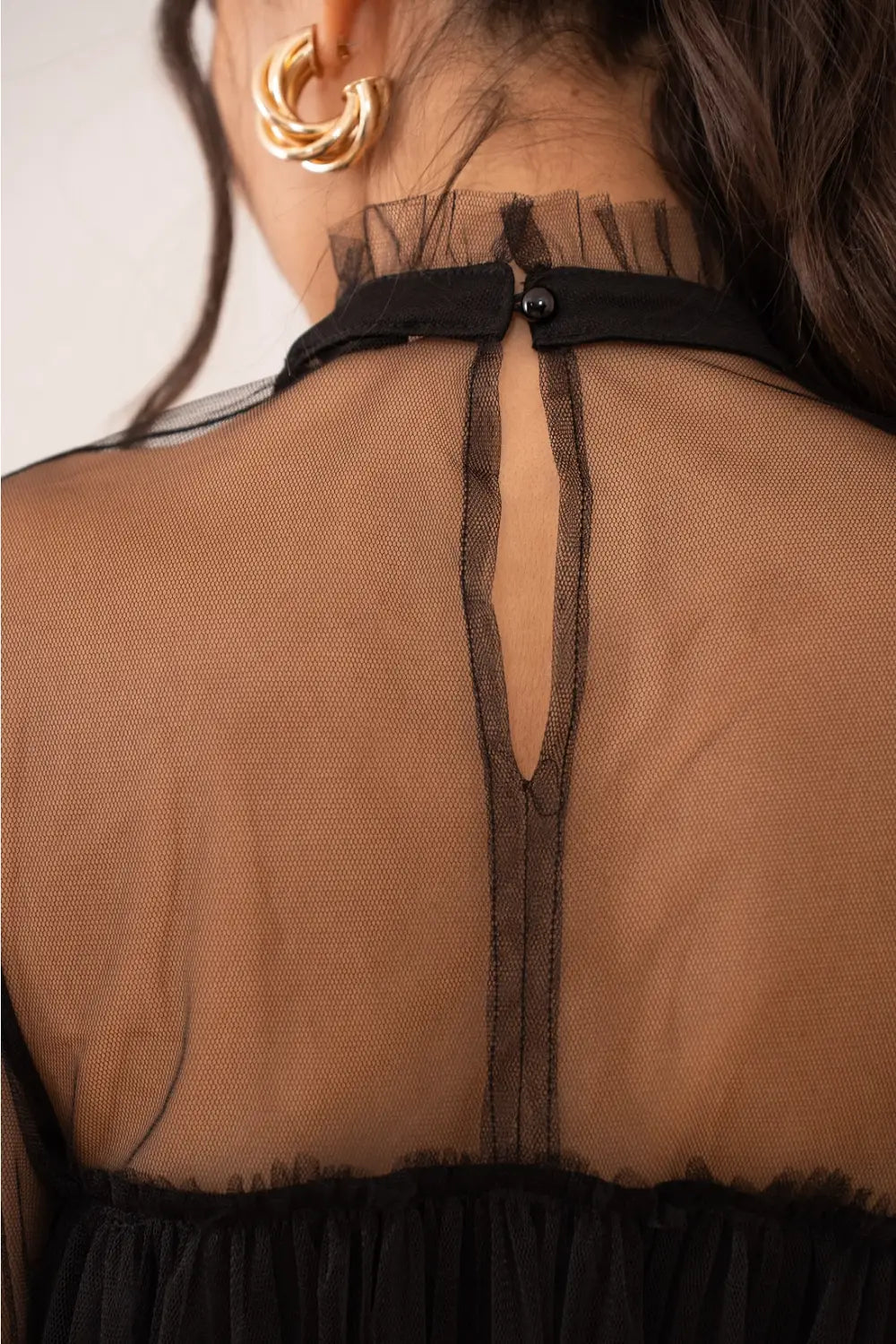 • Soft sheer tulle overlay that adds instant drama (without any of the scratchiness).