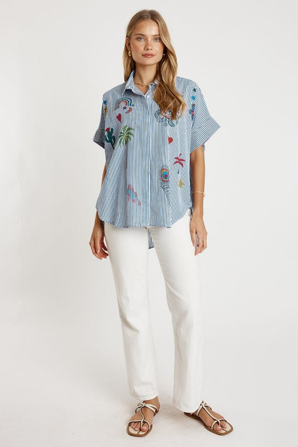 A shirt that says “I woke up fabulous” without actually having to say it. The Tille Shirt is all about laid-back polish — relaxed, roomy, and sprinkled with playful embroidered or printed icons that keep things interesting (even on a Monday).