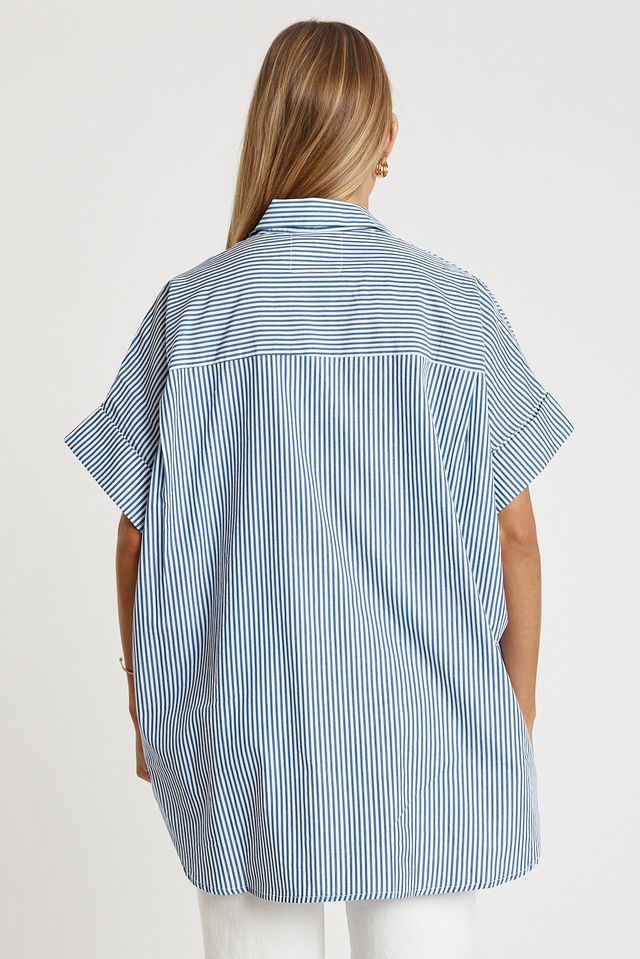 With its easy boxy fit, subtle stripe, and just-right drape, this one’s made for spontaneous brunches, beach days, and the occasional “I’ll just wear it over swimmers” moment.